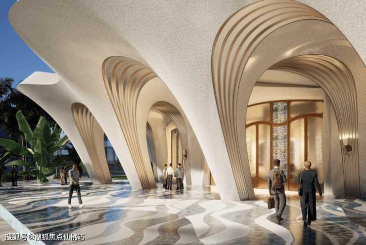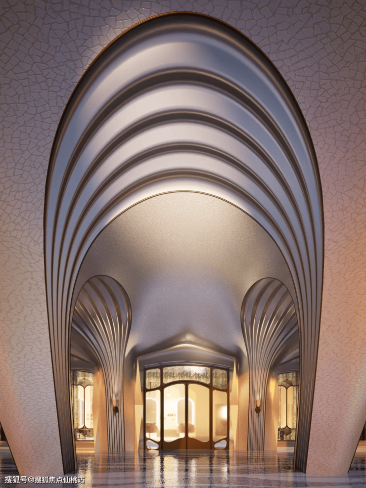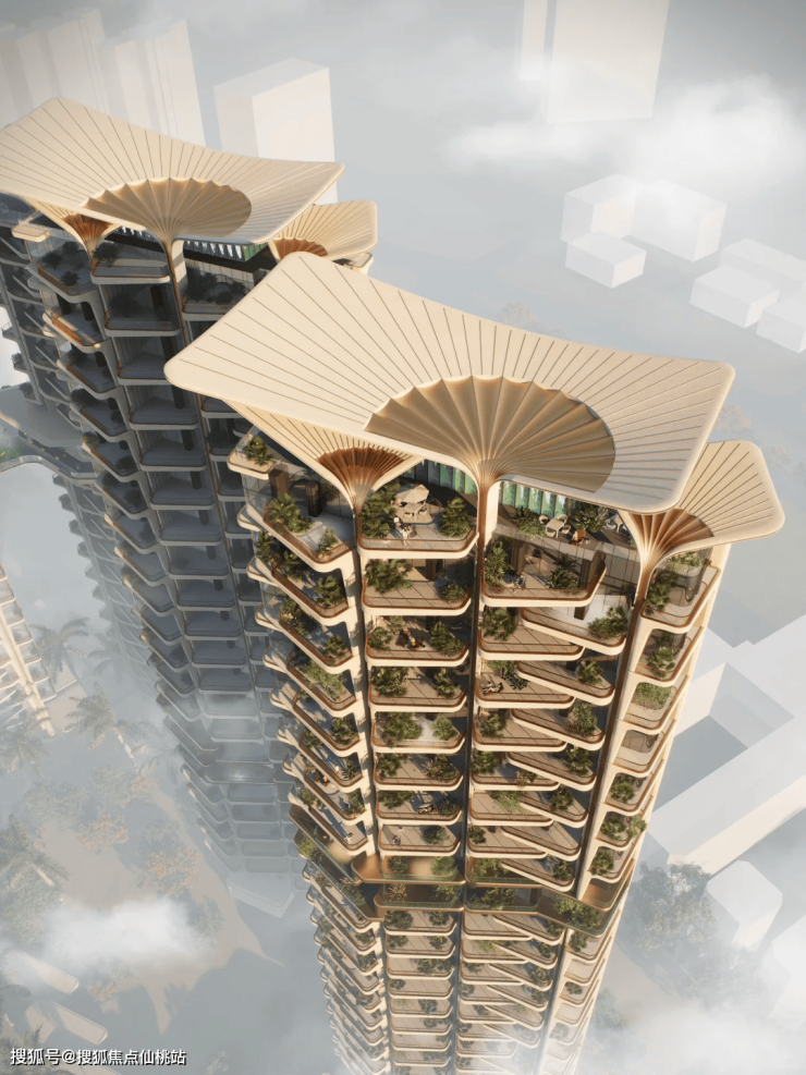 同时,屋顶的设计则巧妙地运用了中国传统扇面的抽象元素。扇面的优雅弧线和独特造型被融入到屋顶的结构中,不仅增加了建筑的层次感和立体感,更赋予了建筑一种东方文化的韵味。这种将东方传统文化与现代建筑手法相结合的设计,使得宸启瑞湖二期的立面既具有时代感又不失文化底蕴,成为厦门天际线上一道独特的风景线。
