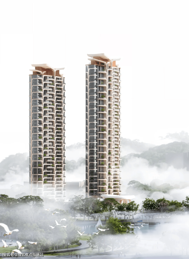 宸启瑞湖二期的立面设计是项目的一大亮点。设计师以白鹭展翼的形态语言为灵感,将这种灵动的姿态转化为建筑立面的线条和轮廓。白色的立面材质在阳光的照耀下,仿佛白鹭的羽毛般轻盈洁白,给人一种纯洁、高雅的视觉感受。