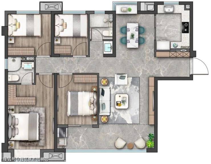 主次卧独立分区,最大化保证两个房间的私密度;