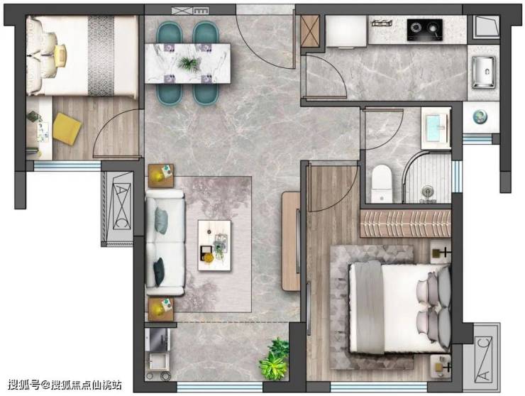 【A户型 建筑面积约61㎡魔法功能两房】