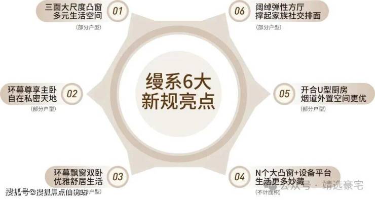 ◎中轴新规 缦系产品建面约92-173㎡三至四房缦系新规产品, 六大设计亮点,定义人居新境。