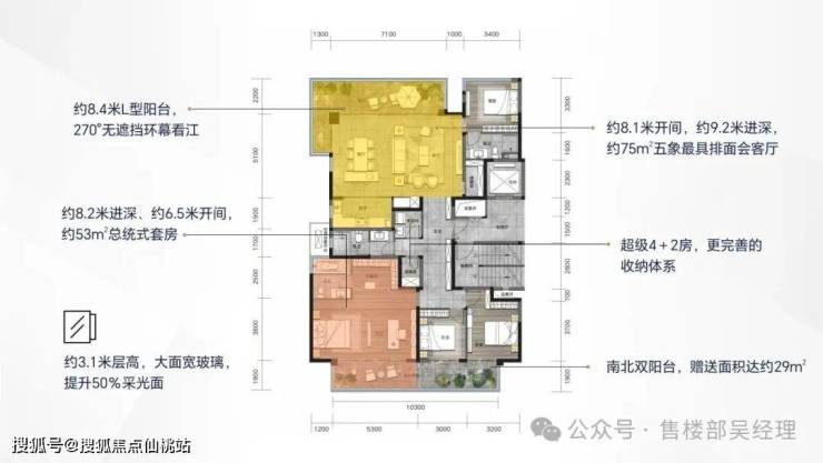 4+2房奢居设计,南北动静分区、社交区/休憩区互不干扰;