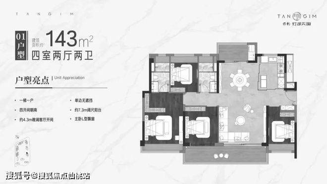 保利灯湖天珺规划9栋住宅楼,所有楼栋均是专梯专户设计,其中1-3座、8-9座每层三户,靠近中轴公园一期的5-7座为每层两户。128-143㎡三梯三户,189-238㎡两梯两户