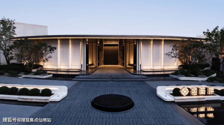 “招商序”以45°斜轴串联空间,引入序系花园商业,打造超过120米的超级城市展示面。约53米弧形巨幅石材景墙,以贝金米黄石材铺贴,结合定制灯光系统,昼夜皆可呈现艺术馆级的视觉效果。这是一处不仅服务于业主,更献给城市的建筑艺术名片。