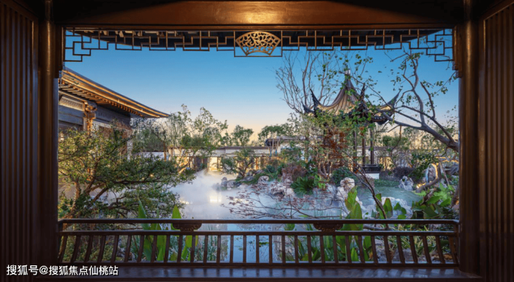 站在三进院远眺,一幅山水画卷瞬现眼前——提取南宋画家夏圭的《溪山清远图》的山水意境,以揽月亭为主要景观,结合水榭、松石、连廊等造景元素,构成了大气磅礴的视觉盛宴。