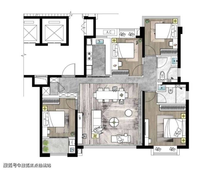 【南向双卧套间】南向双套房设计平衡家人的生活空间。