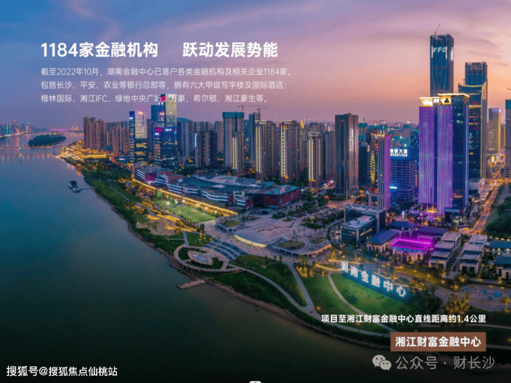 ⑤湖南金融中心:湖南金融中心已落户各类金融机构及相关企业1184家,包括长沙、平安、农业等银行总部,开源证券、东北证券、五矿证券等进驻。拥有六大甲级写字楼及国际酒店:楷林国际、湘江IFC、绿地中央广场、万豪、希尔顿、湘江豪生等。