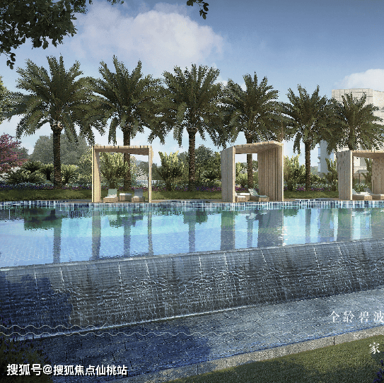 小区内部打造全龄化服务配套,满足不同年龄段业主需求。以景观型泳池为活动中区,配备成人区、儿童泳池以及天然温泉泡池区域。