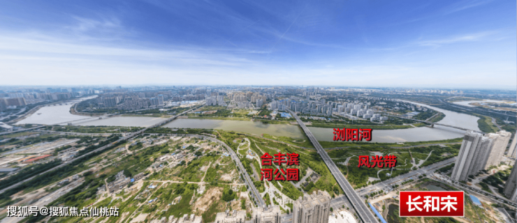长和宋的一线河景之优势,前文已述。但长和宋的河景,稀缺性值得重点一提。楼盘位于整个弯道中心位置,观河面长达约10公里,对岸隆平新城天际线清晰可见: