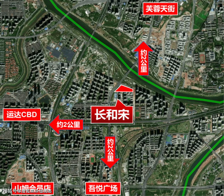 其一,长和宋,地处商业的中心,生活超方便。细看长和宋位置,往南约2公里是高铁新城CBD,汇聚了吾悦广场、山姆会员店等商业;往北约2公里是芙蓉天街;往西约2公里是运达CBD。同等距离下,南、西、北三个方向都有大型商业,业态多元,几分钟车程即达!