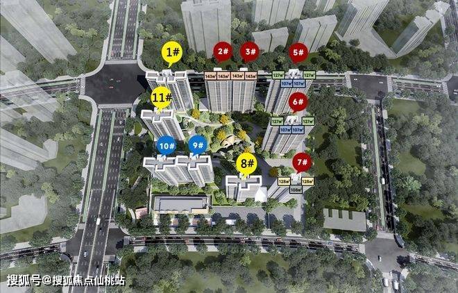项目规划户型建面约107-143㎡3-4房,户型方正、空间朗阔,兼具功能性与舒适性。其中,1#、5#、6#楼为107㎡三房、127㎡四房户型;2#楼均为143㎡四房户型;7-11#楼为108㎡三房、128㎡四房户型。