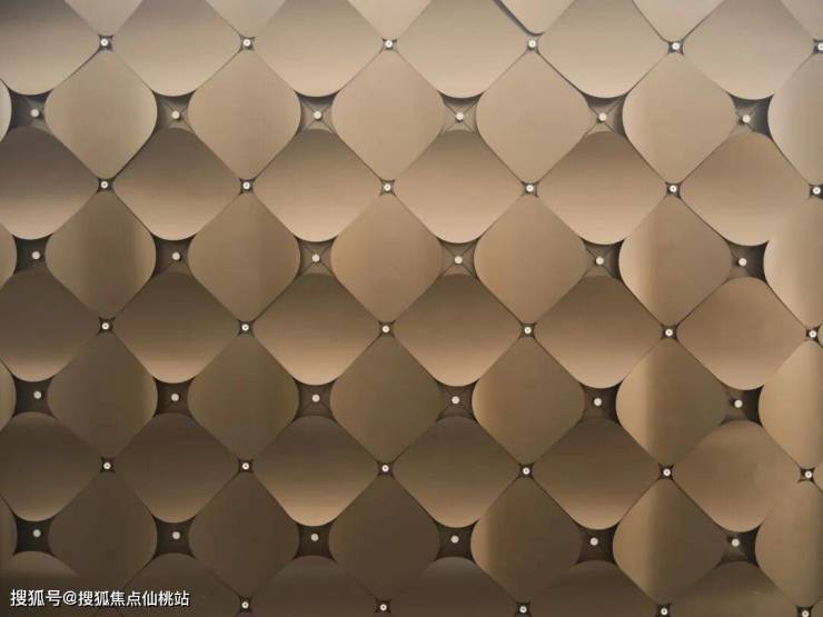 甄选仿铜拉丝铝板,匠心锻铸塑形,于日光流转间漾起鎏金般的温润光晕,宛若九重天阙坠落的星辰碎片;逾八百片花瓣型吊顶,以阵列之姿排布,井然有序如星辰棋布,铺展成璀璨的空中景致。
