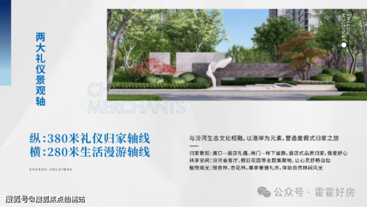 >融合汾河文化,提取水岸元素,规划“一环两轴三园多境”的设计理念,营造约7.6万㎡全龄共享景观,拥有约700米自在慢跑道、汾河会客厅、森趣自然、茶歇花园等归家礼遇,构筑满足家庭的景观智慧社区。