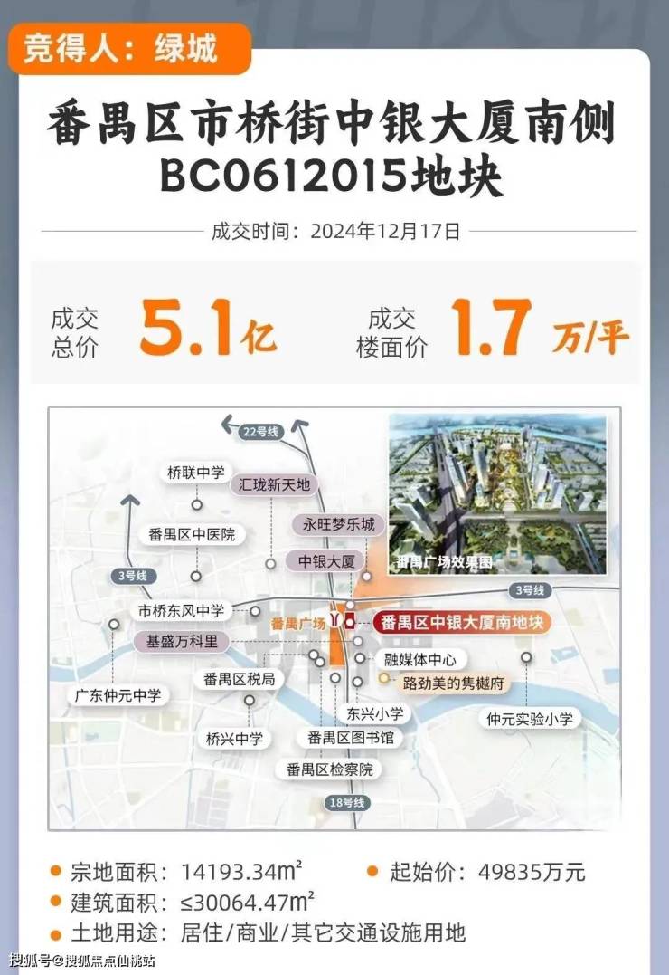 2024年12月17日绿城拿下番禺广场中银南侧地块,总价5.08亿,楼面价1.7万/平!(未扣除配建,按总建面计算),地块北侧,就是广州赫赫有名的蟑螂大厦——中银大厦