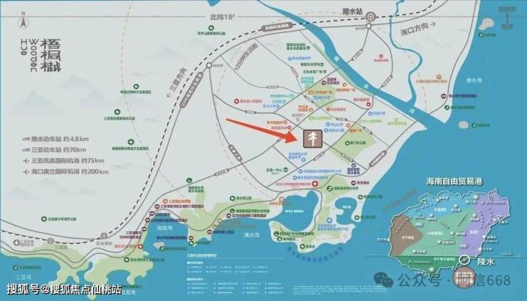 距G98高速黎安互通约4公里,距陵水动车站约4.8公里,距离三亚凤凰机场约75公里。