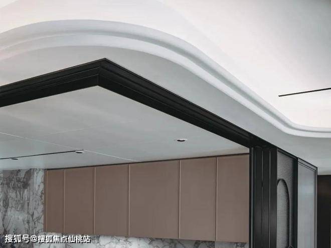 项目的天地墙也是细节满满:天花板设计圆弧吊顶,工艺极高颜值自然不俗。客厅整块的背景墙充满质感,卫生间通顶的大面墙砖极抓眼球。客厅选用90*180大板砖恢弘大气,卧室采用人字拼地板,温馨港湾!
