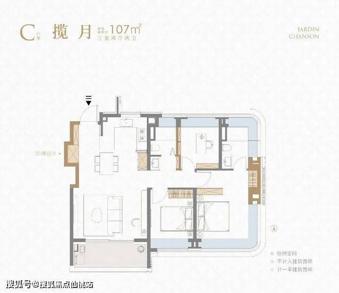 不夸张的讲,这个建面约107㎡刷新了我对百平三房的新认知,据悉该户型或将申请专利,我认为实至名归!