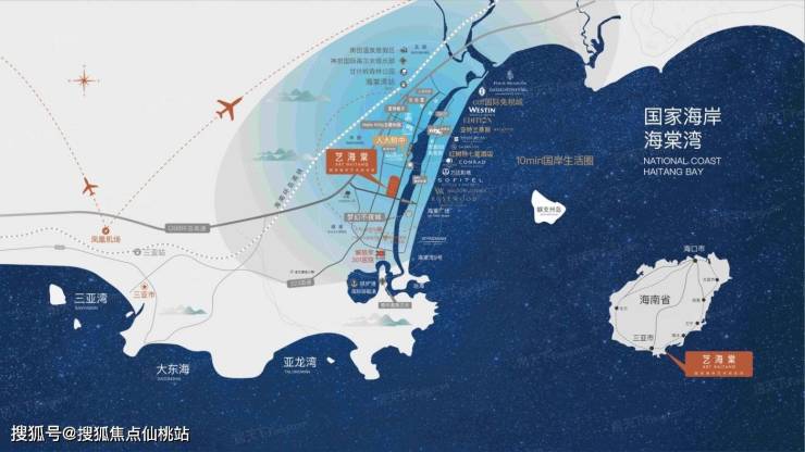 落址海南自由贸易港,三亚国际旅游消费中心,“国家海岸”海棠湾,湾区一线核心腹地。