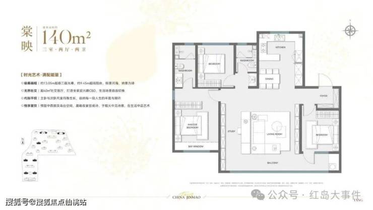 140㎡同样是主力户型,13米的南向开间,配置三房两厅两卫,同样满足二胎甚至三代同堂家庭的需求。