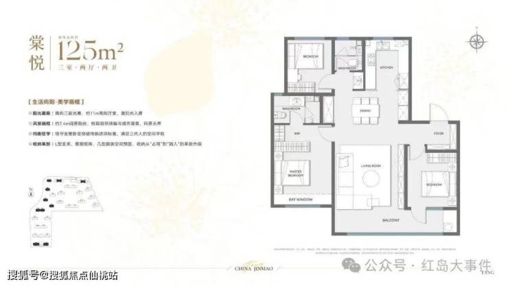 比如125㎡户型就采用经典的元宝户型布局,南向双卧分离互不干扰,LDK一体大横厅,既通透又方便全家互动。