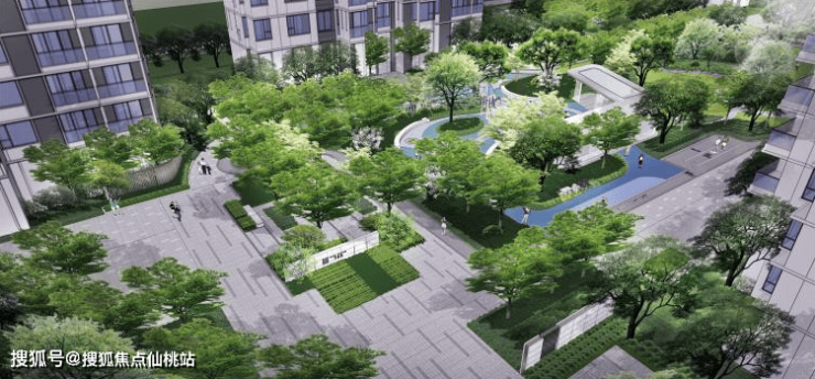 传统社区的园林基本以草坪绿化为主,没有成规模的园林景观。万象府迭代立体景观园林,约33%高绿化率覆盖,打造公园式社区。让业主住在公园里,更加沉浸于自然生活主场。