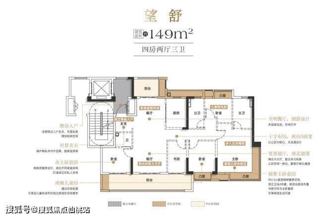 洋房产品主打125-149平方米的大平层,遵循大面宽、短进深的设计理念。例如125平方米户型可做到南向四开间,三房朝南一房朝北,餐客厅南北通透。149平方米户型则做出了市面上近170平方米的感受,做到4房+1房,3卫配置以及少承重墙的布局,使后期改造非常便利。