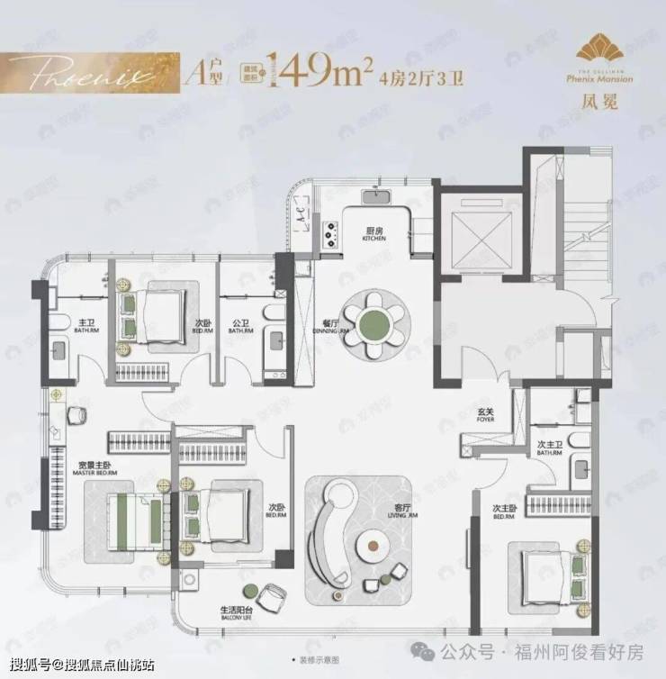 1.约 149㎡ 四房两厅三卫(入门改善)