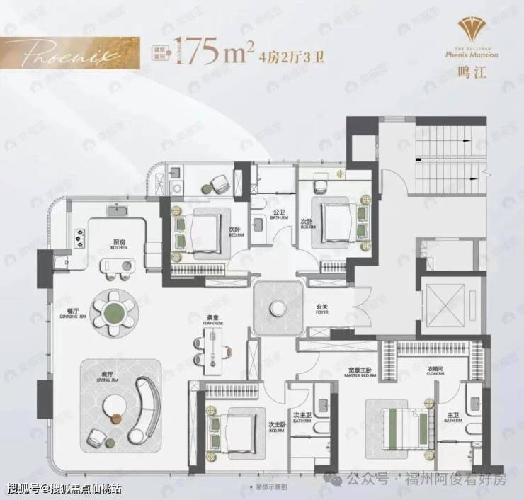 2.约 175㎡ 四房两厅三卫(进阶改善)