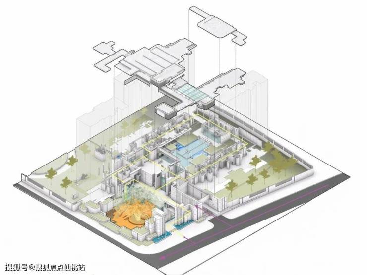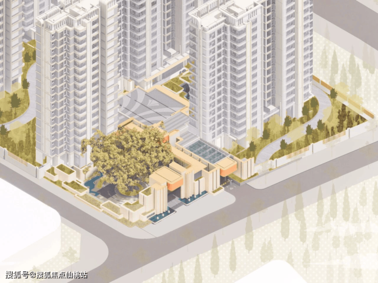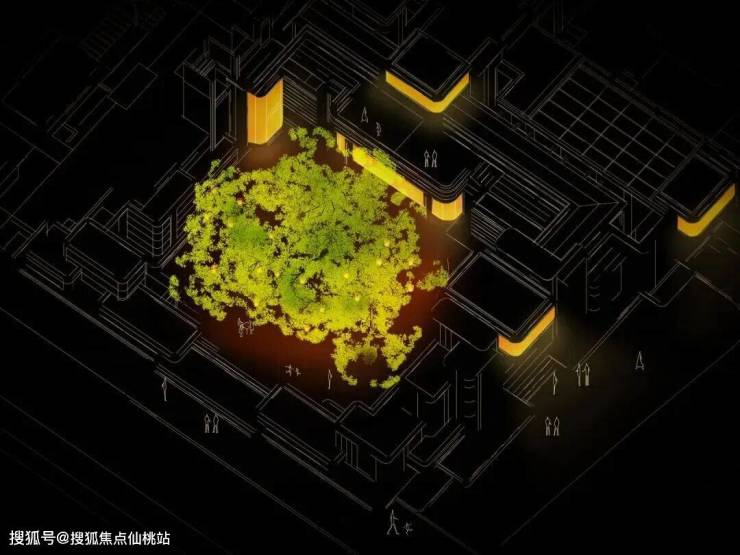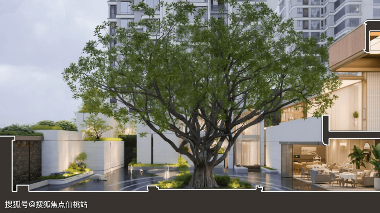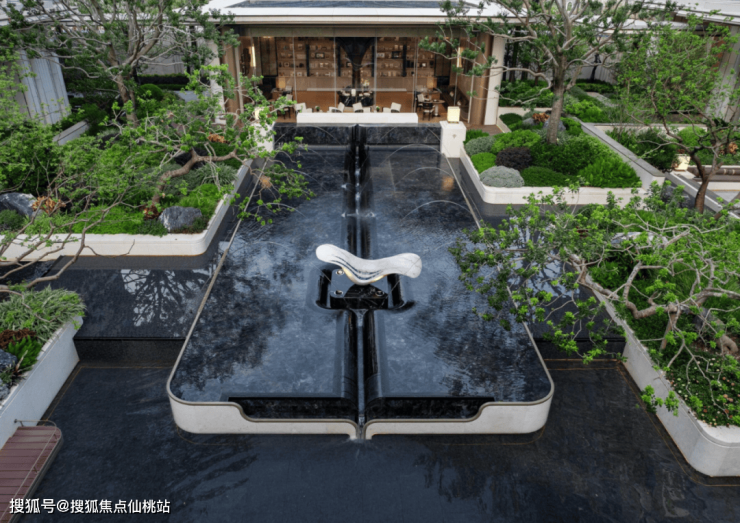 示范区以“回型动线“,徐徐展开叙事:外圈是连贯如诗篇的展示与归家路径,内圈则以层层退台,围合出庭院深深。塔楼底部的架空层被悄然纳入这流动的章法,让人得以在不同高度间穿行、驻足、回望。行游其中,建筑、庭院与景观的边界逐渐消融,终成一处可漫步、可回游、可栖居的立体生活长卷。