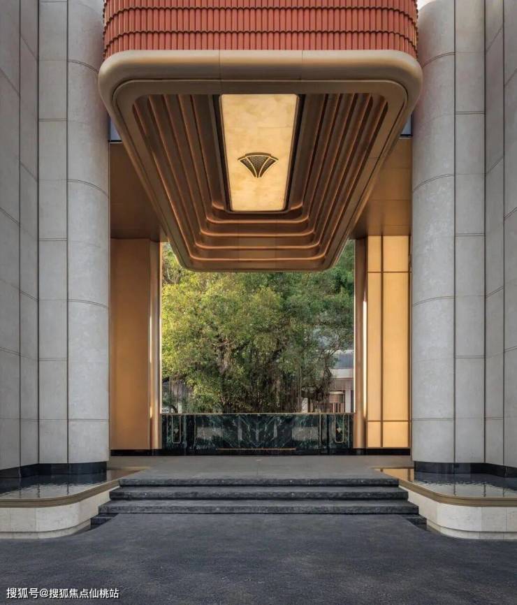 走过四米宽的归家廊道,外侧百年榕树的绿意与广场生机透过光影渗入,宁静自然的气息无声漫溢。内侧透光石材铺就的天顶与精致饰面辉映,勾勒出温润而典雅的质感纵深。回望十米高门庭,空间的序列节奏与仪式韵律在此交织,终将归途沉淀为一场兼具温度与尊崇的抵达。