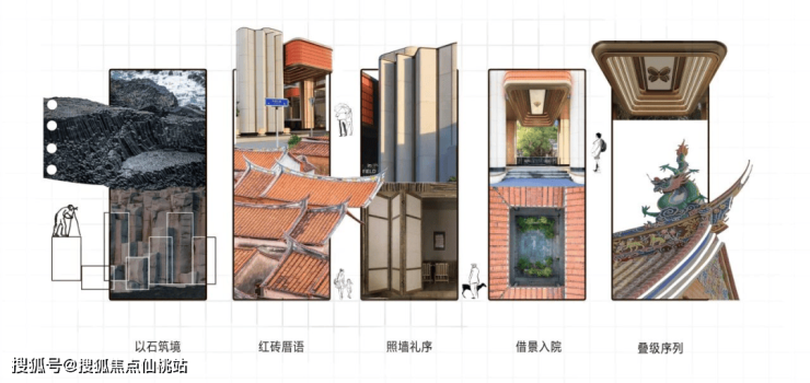 设计以榕荫、红砖与礁石肌理的标志性符号为起点,延展出两进开放院落界面。
