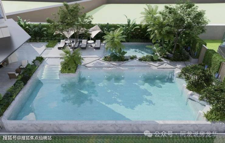 • 立体森谷园林:特邀城市级公园设计大师【派澜设计】执笔,落地飞瀑会客厅,无边际泳池、双儿童主题乐园等度假场景,将自然垂直植入社区每一个角落。