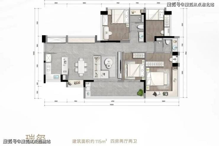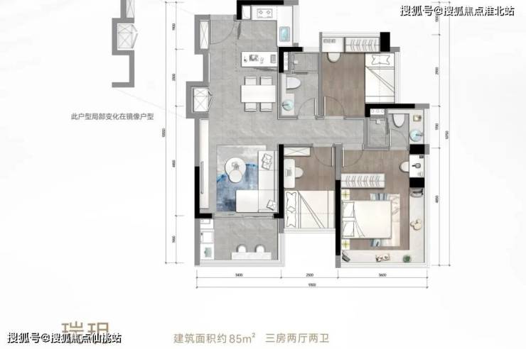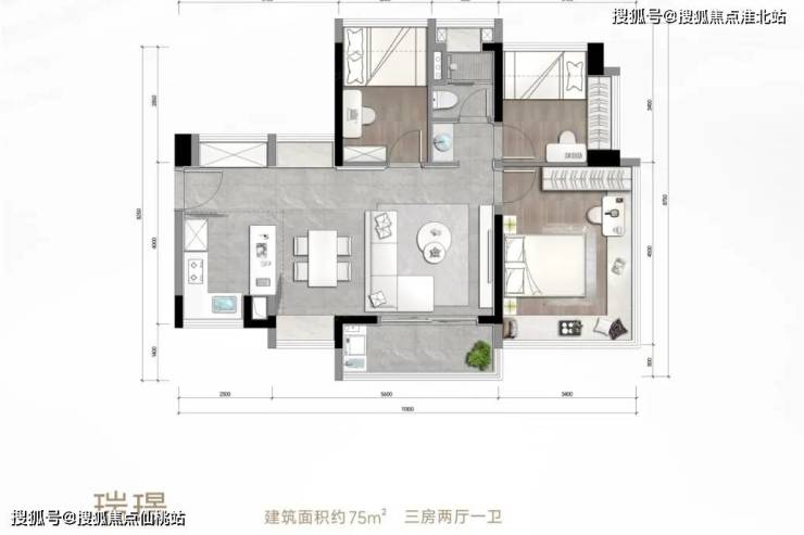 松湖瑞府推出建面约75-118平的三至四房,面积段设置虽偏向刚需,但楼市君发现,有部分改善户型设计理念被下放至该项目内。