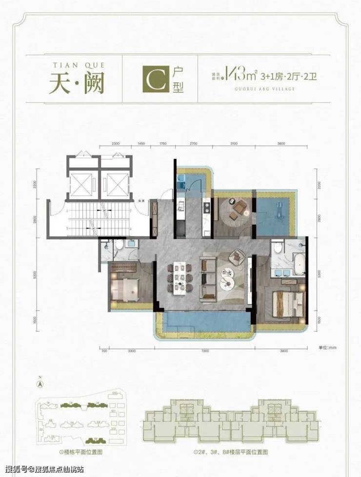 C户型: 建面约143㎡ 3+1房2厅2卫