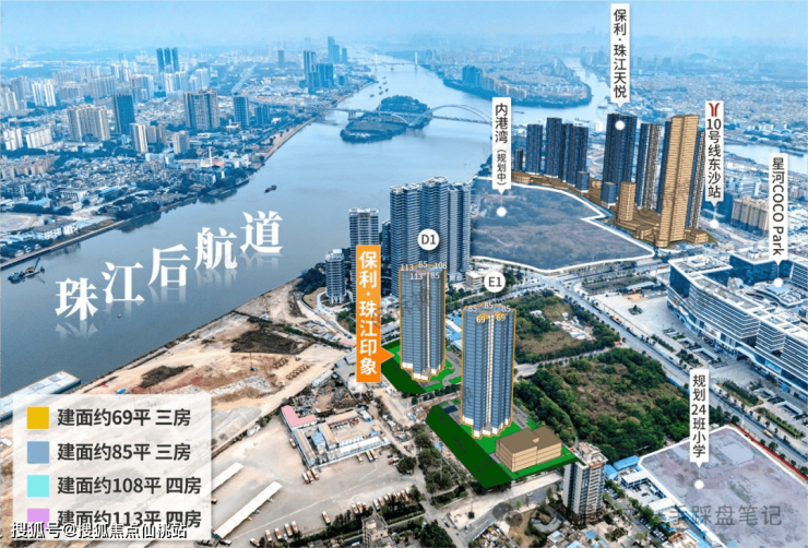 在荔湾东沙,由保利推出的滨江小户型,南地块是保利珠江天悦,北地块是保利珠江印象