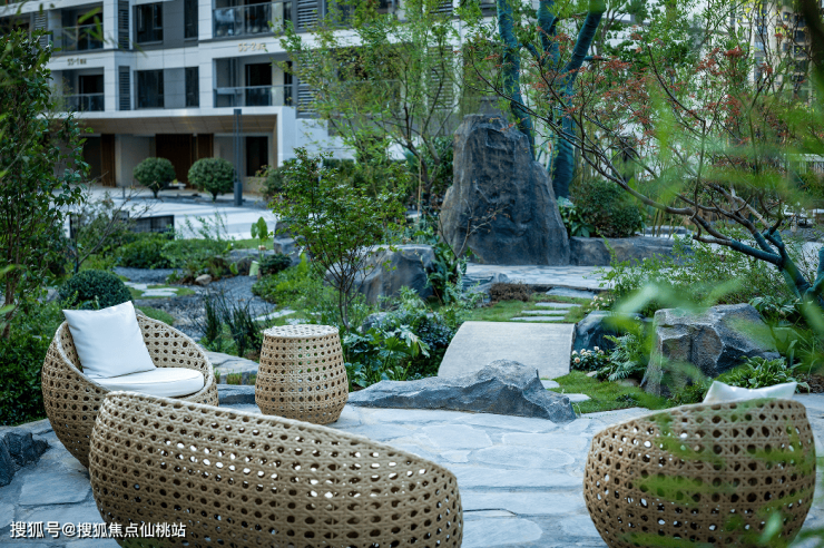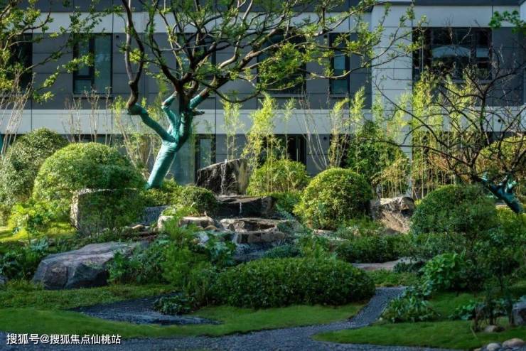 俯瞰社区,楼下园林美景尽收眼底,超高密度苗木错落排布,中式山水美学融合湖湘文化底蕴,竹林花径蜿蜒其间,一步一景,宛若置身私家山水画卷,饭后闲眺,社区园林的雅致与生机皆在眼前。