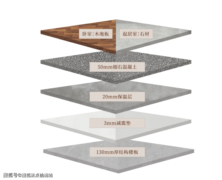 楼上孩子的奔跑声、挪动家具的摩擦声总是在所难免,紫阳隐翠匠造前沿的“浮筑楼面系统”,突破常规楼板100mm厚度,以130mm厚结构楼板,上面铺一层3mm的隔声减震垫,再盖上20mm的保温层,给楼板缔造多重隔音防护,有效降低楼层间噪音。