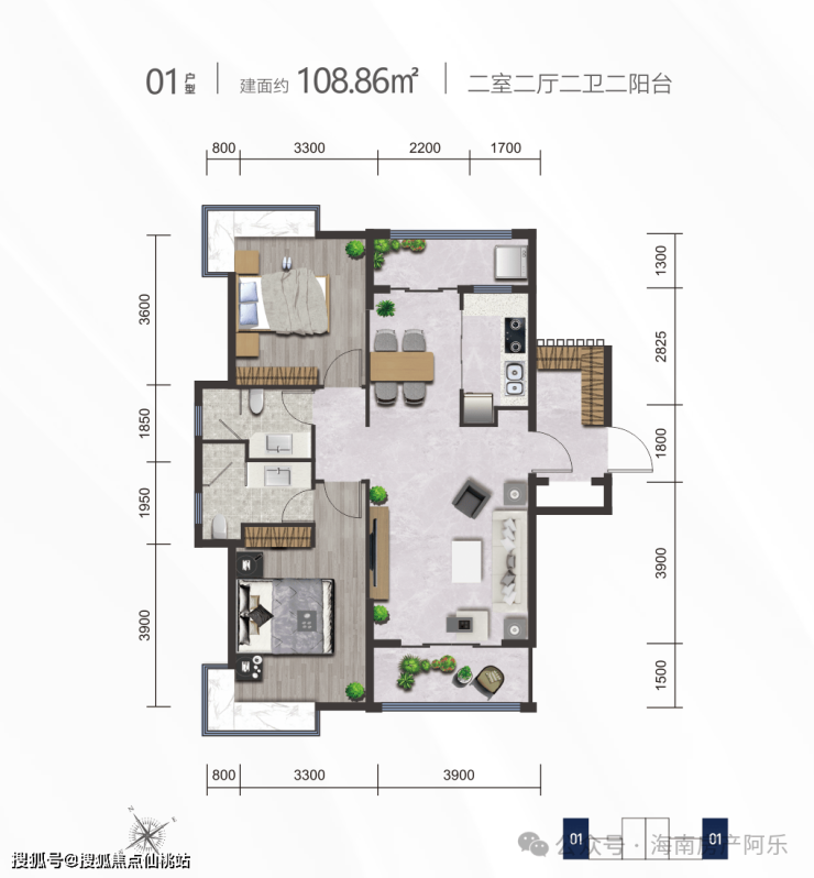 01户型丨建筑面积约108.86㎡