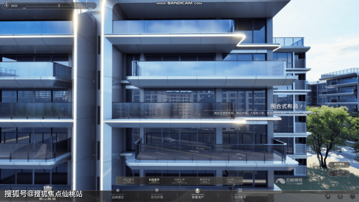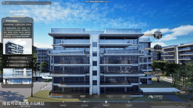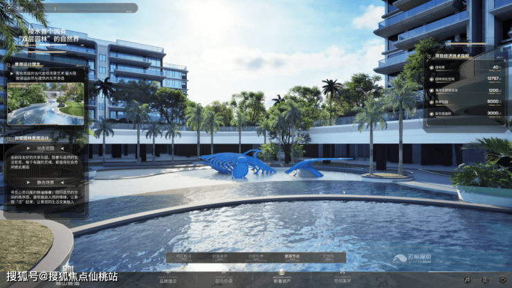 外立面采用LOW-E玻璃与全体系铝板,经特殊工艺处理抵御热带气候,大幅玻璃幕墙与错落阳台让建筑如“生长在自然中的艺术品”。云鲸以高亮线条呈现项目外立面的海洋流线美感,通过多角度、多镜头综合展示建筑外立面核心细节。