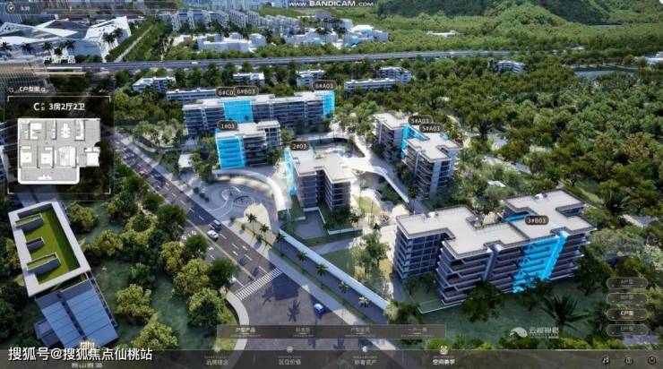 项目以“低密、高定、度假”为核心标签。云鲸视觉通过三维画面交互,详细地展示项目的规划布局、建筑设计、出入口、交通流线等。