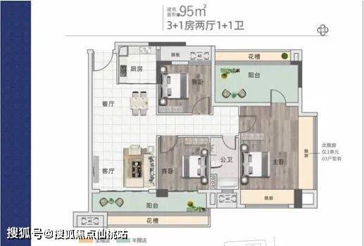 花槽、飘窗等均为赠送面积,实际得房率远超95㎡,真正实现“小户型,大享受”。