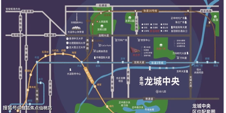滨河中心区作为龙岗中心城重点开发区,合正、中信、中粮等品牌开发商联袂钜献超900万m²城市综合体。本案与东西两侧的合正龙腾旧改等形成近300万m的高端互联商住圈,于重心之上再造盛势。坐拥建面约51万m²水岸综合体商业,近6千户金地龙城中央业主,约2.5万常住人口及周边10万+流动人口的稳定消费力保障。