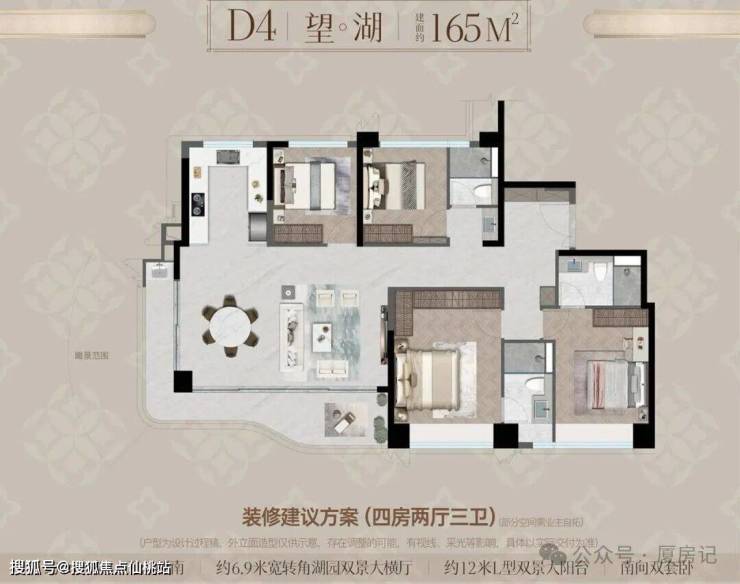 •宸启瑞湖主力户型有 244平 289平 366平等4室布局;