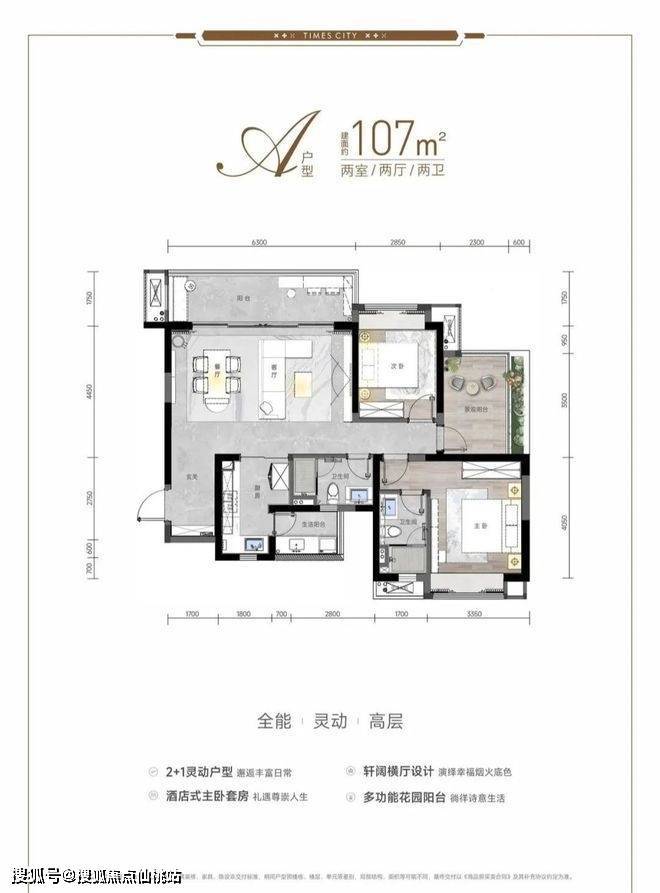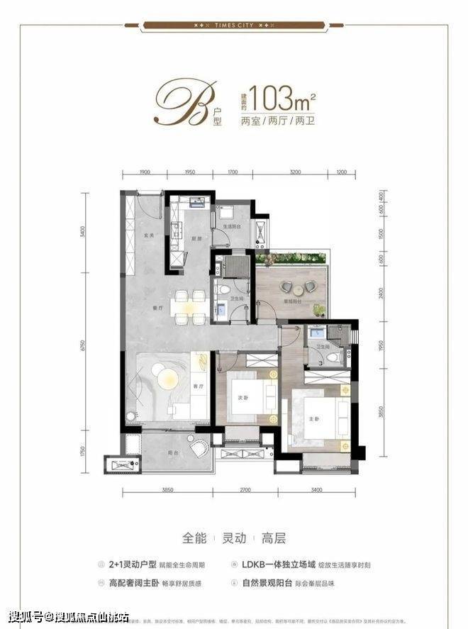 约2.0综合容积率,约40%绿地率,一梯两户洋房、两梯四户高层,户型方正,全明户型,超大阳台,得房率高。