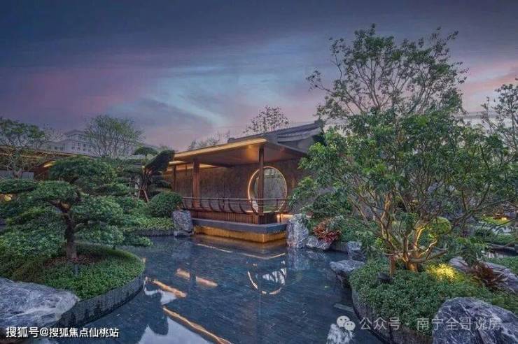 【伍进·志清远翠】待霜亭结合场地地形高差营造,景亭与假山叠水相映成趣。围绕主景大树打造儿童游乐设施,描绘轻松自然、格调清雅的童趣生活场景。【下沉庭】院一池三山,泗水归堂,新中式禅意园林。