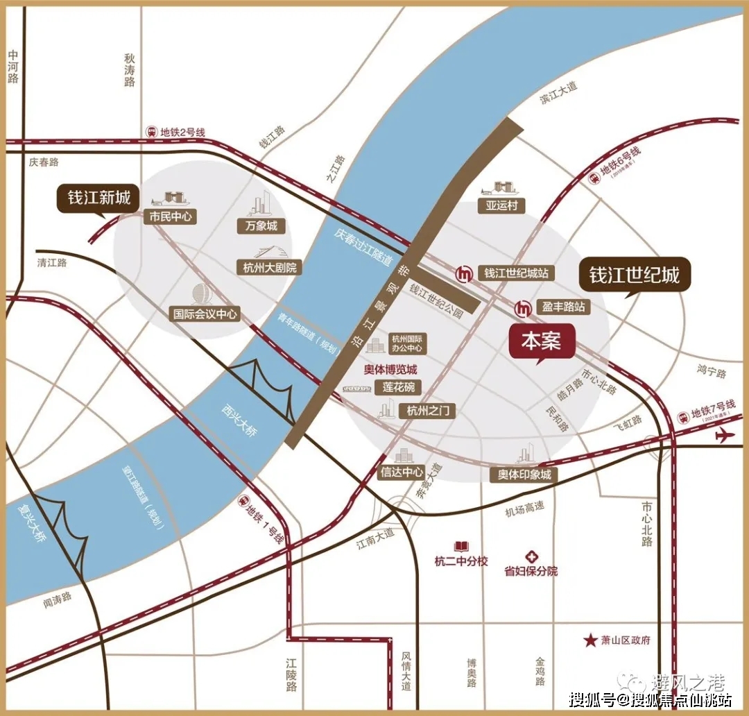交通方面,奔竞大道作为贯穿世纪城东西的主轴,与江南大道连接横贯滨江。钱江三桥、四桥延伸杭州中河高架、秋石高架,可以快速到达杭城各个区域。除了庆春隧道,规划中的望江路隧道和博奥路隧道也分别将于19年和2020年通车,已在运营中的2号地铁线穿越整座城市南北,是连接城西文教、凤起庆春传统市心、钱江两岸的重要路线。同时通过2号线可换乘6号线(2019年通车)、7号线(2021年通车)、轻松到达之江板块及杭州萧山国际机场。在这样通达的交通出行下,各大型综合商业配套,如龙湖天街、万象城、来福士、奥体区域的各大在建商业配套也都触手可及。