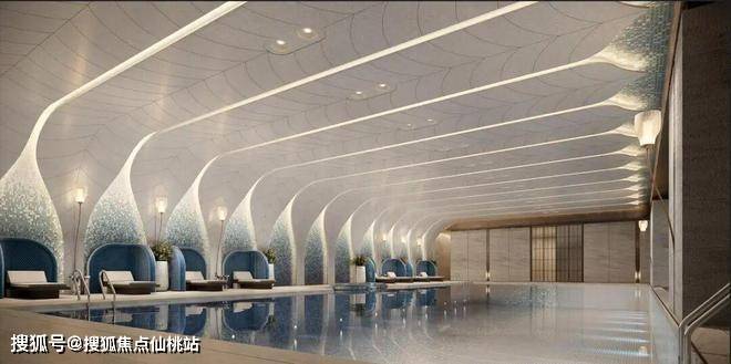 自在松弛:公区设计借鉴希腊One&Only唯逸度假村,设置流光序厅、光彩会客厅、下沉庭院三大情绪转化点,打造度假酒店式归家礼仪;奕Club融合健身、保龄球、高压氧舱、湿蒸桑拿、书室等功能,实现“足不出户私享极致度假”。