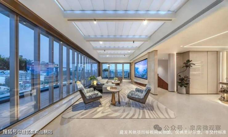 项目在电梯厅就做了私享升级,270°全明观景电梯厅,业主等候电梯时可享受窗外美景,也可打造为阳光花园,亦或是收纳空间。