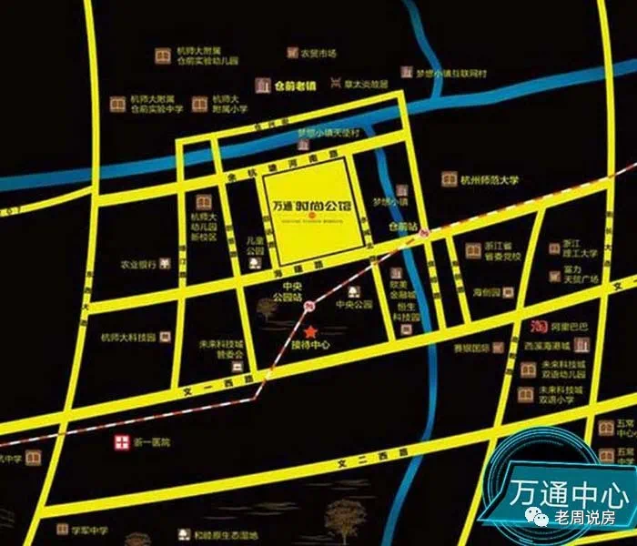 【交通配套】:距离号称“换乘之王”的地铁5号线中央公园站约670米,沿其可到达杭州各个区域,地铁出行十分便利;【商业配套】:了项目所在的未来科技城CBD板块聚集:EFC,奥克斯,万通,华夏4大商业综合体,以及政府投资打造的近8万方的地下商业街,总体量超过200万方,是未来科技城乃至整个杭州市大型商业体综合密集度较高和体量较大的板块。【医疗】:浙一医院余杭分院、浙一医院海创园门诊部。【教育】:公办学校有杭师大附属小学、杭师大附属中学、杭师大附属幼儿园、余杭中学、学军中学海创园校区,以及未来科技城双语幼儿园、未来科技城排名前列小学、人大附中、云谷学校等优质民办学校万通时尚公馆坐落未来城CBD,遥望西溪湿地、和睦湿地、五常湿地,对望中央公园,依傍余杭塘河,汇聚杭师大附幼、附小、附中、杭师大等一站式学府,一揽淘宝城、海港城、欧美金融城等综合体。万通时尚公馆由8栋高层构成,采用干挂石材外立面,楼间距高达110米,汲取“中国式院落空间”理念,打造层层递进的院落式景观。