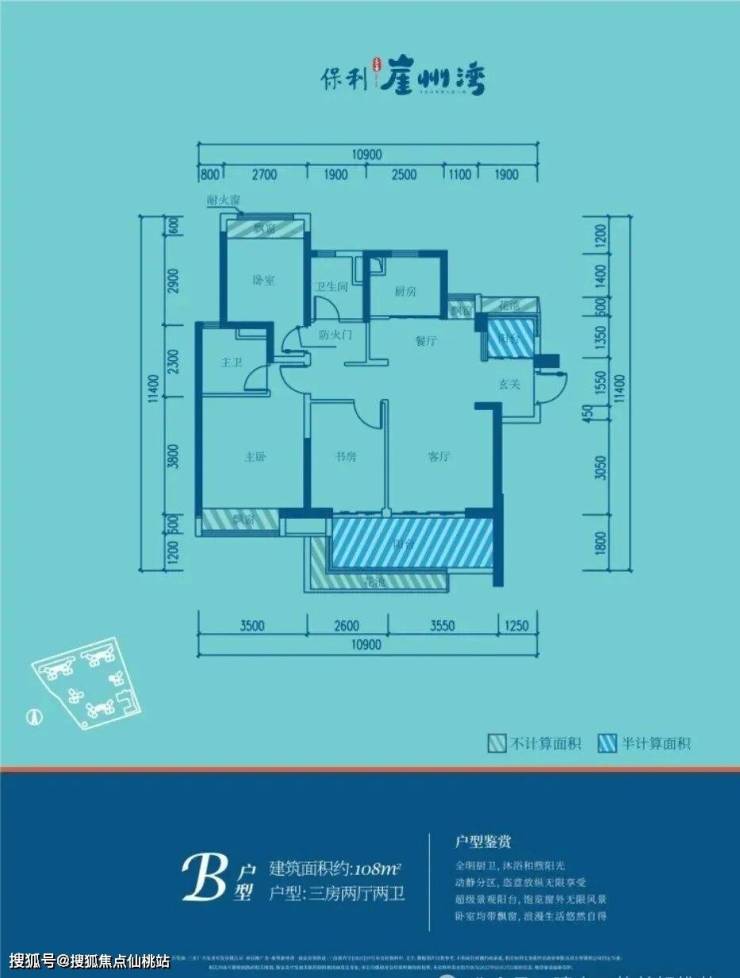 🏖B户型108㎡三房两厅两卫